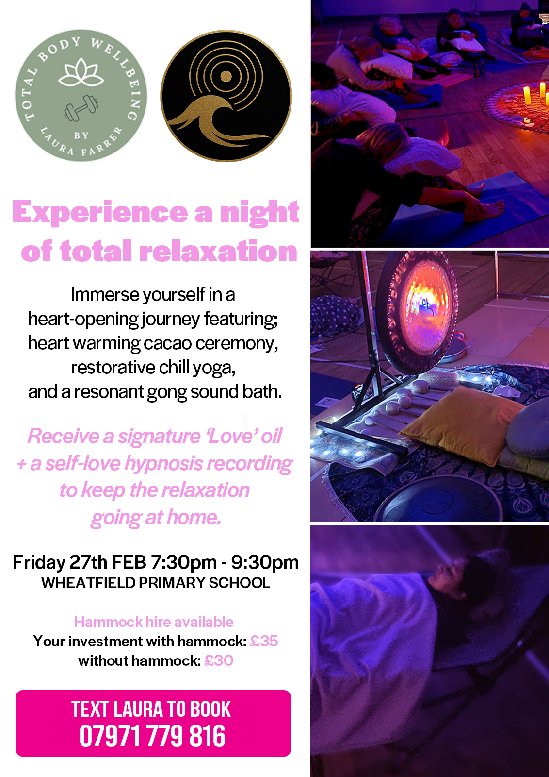Take part in 2 hours of bliss including a cacao ceremony, energy clearing and grounding, chilled yoga with props and a deeply nourishing sound bath experience! Finish off with oracle cards and sweet healthy treats.